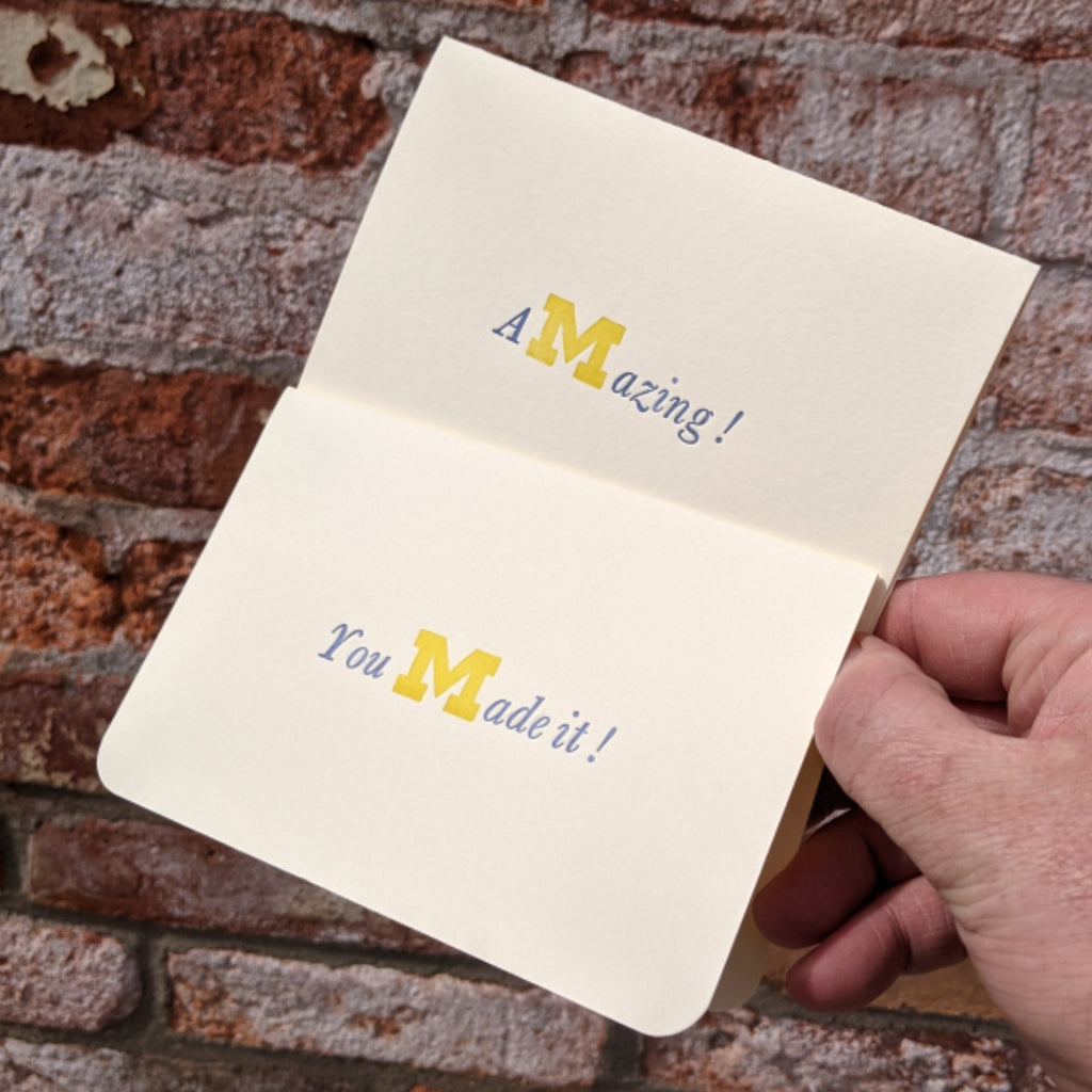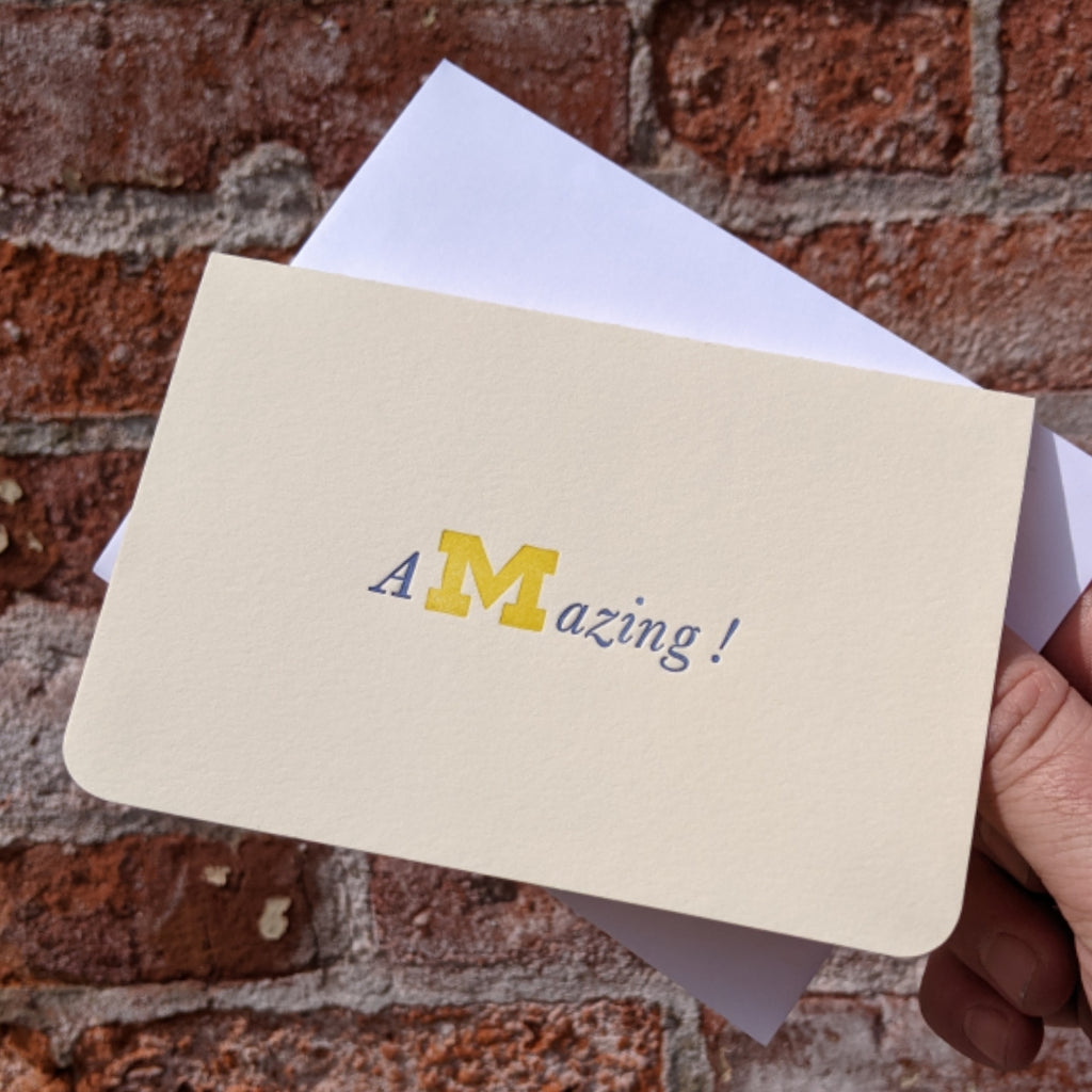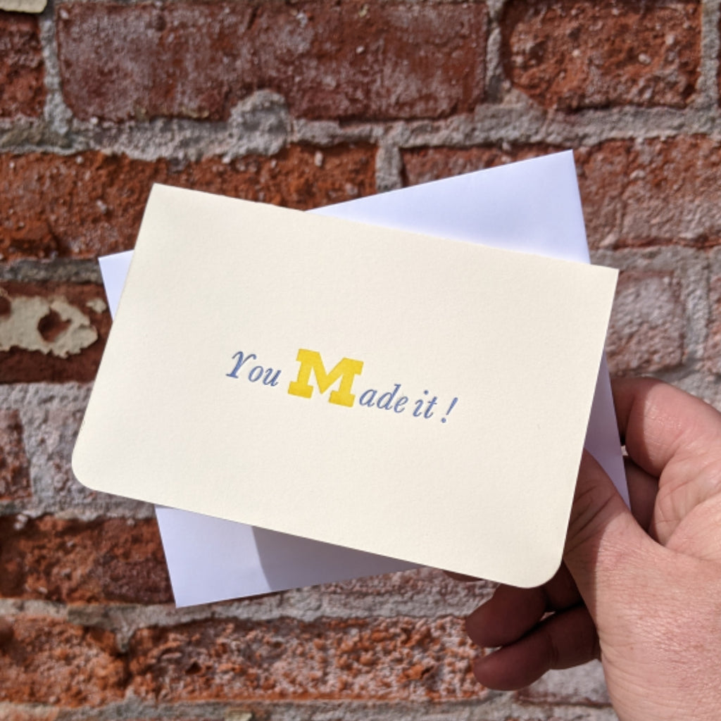 Each card is designed with care and printed with haste! Made on an antique letter press in Chelsea, MI!