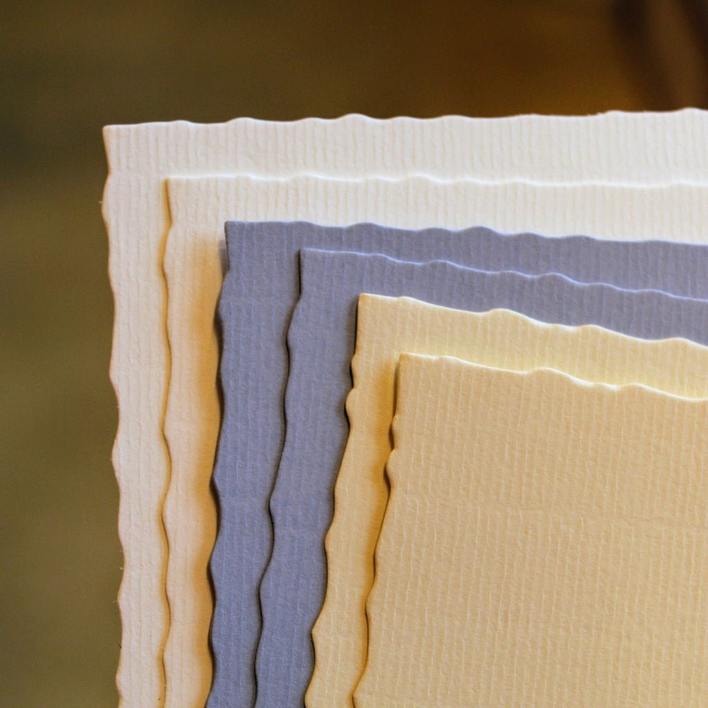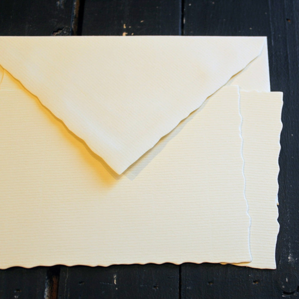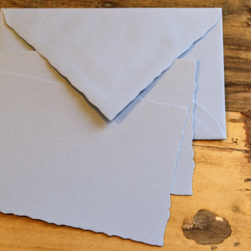 Beautiful deckle-edge cards and envelopes, the Verge de France sets come in a crystal clear box as a set of 10. 300g flat cards and tissue lined envelopes make for impressive correspondence!