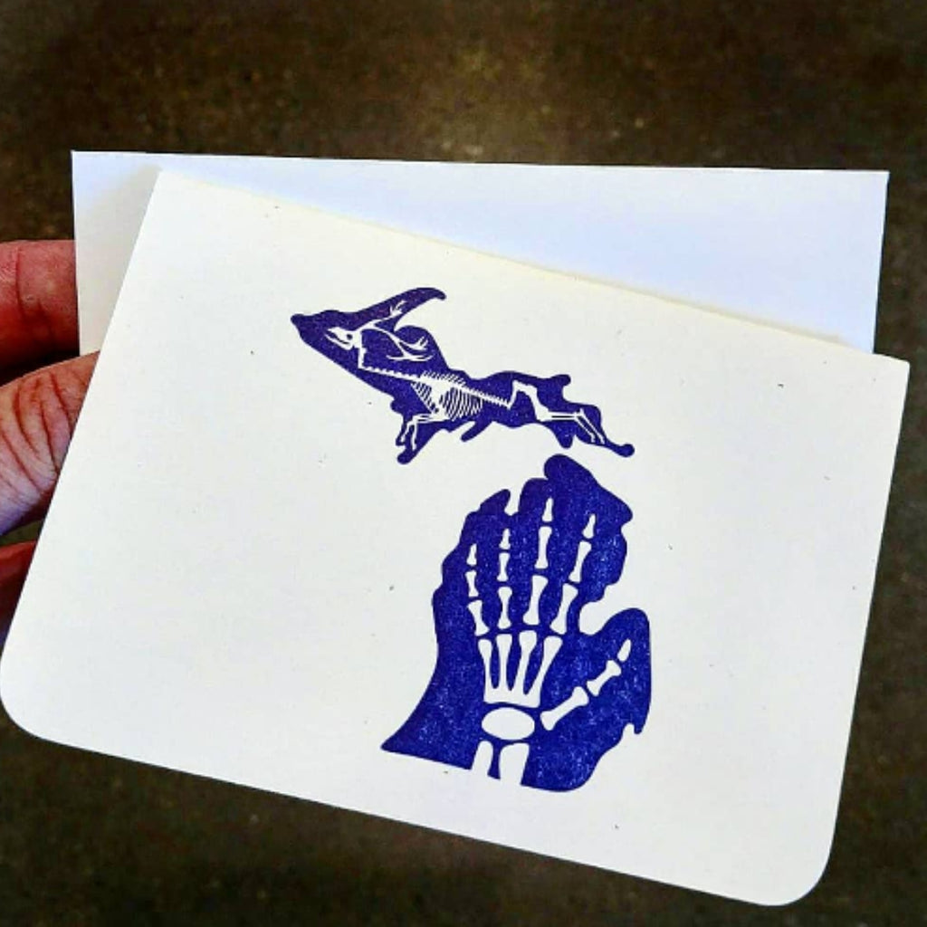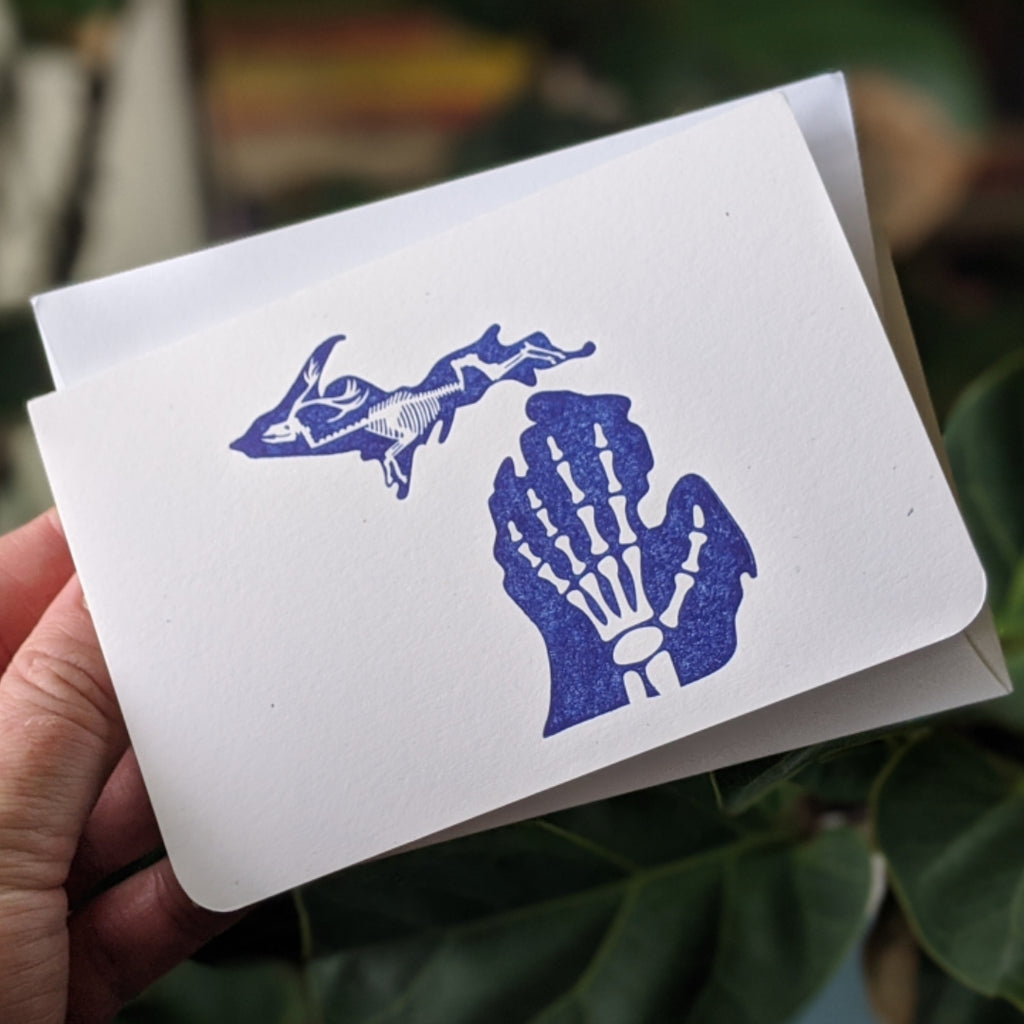 Each card is designed with care and printed with haste! Made on an antique letter press in Chelsea, MI!
