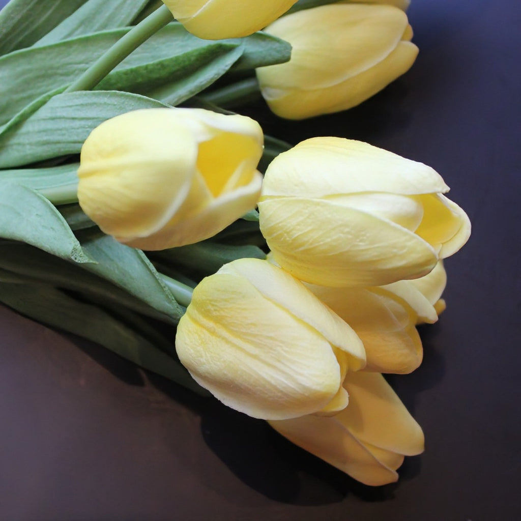 This is a life-like garden grown tulip! A little goes along way with these precious flowers. Whether it's just one or two in a simple vase or something more grand, these tulips will add that special touch to any space. Each stem has a flower and two leaves made with a realistic finish to help bring the outdoors in and the stem contains a strong, discreet wire for easy shaping.