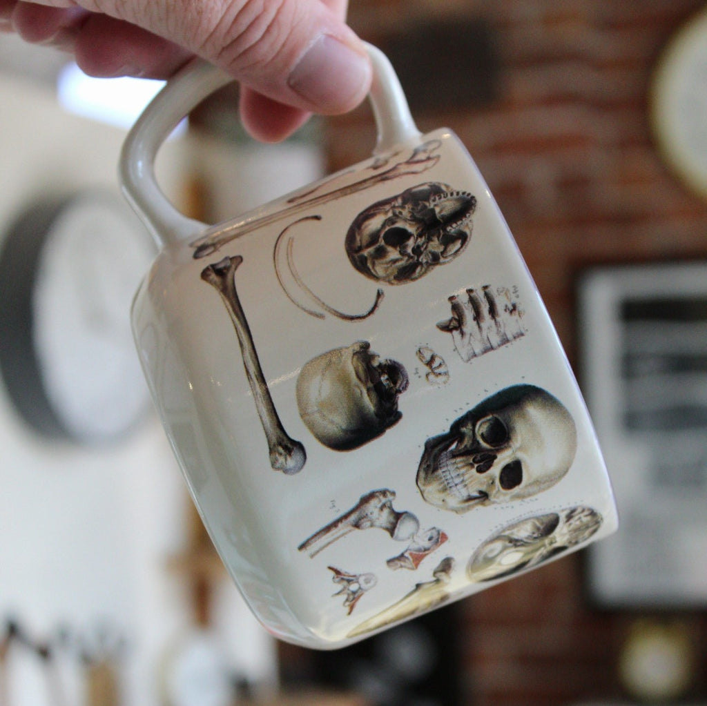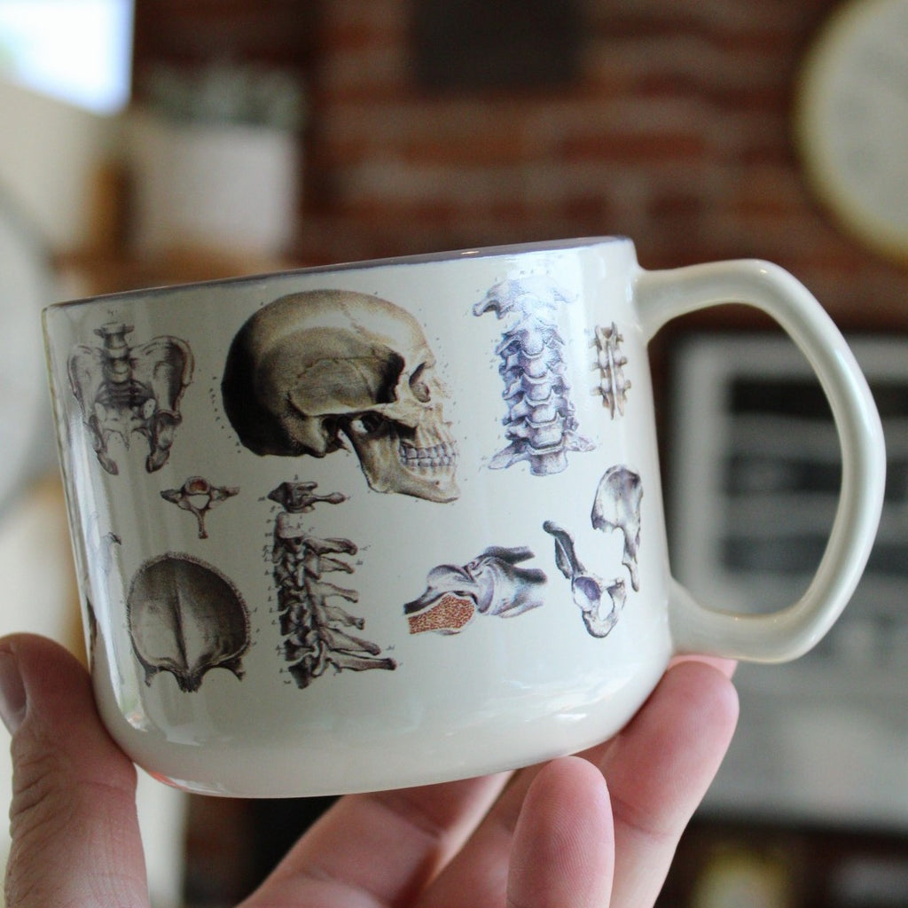 Direct your thoughts to your own inner structure while you sip from this Skeleton ceramic mug. Complete with full-color medical illustrations of some iconic bones including the skull, pelvis, and ribcage, you can use it to review for your next exam or simply to appreciate the elegance of the human body.