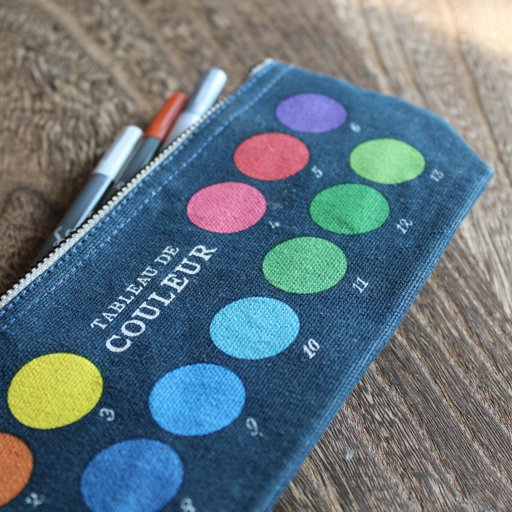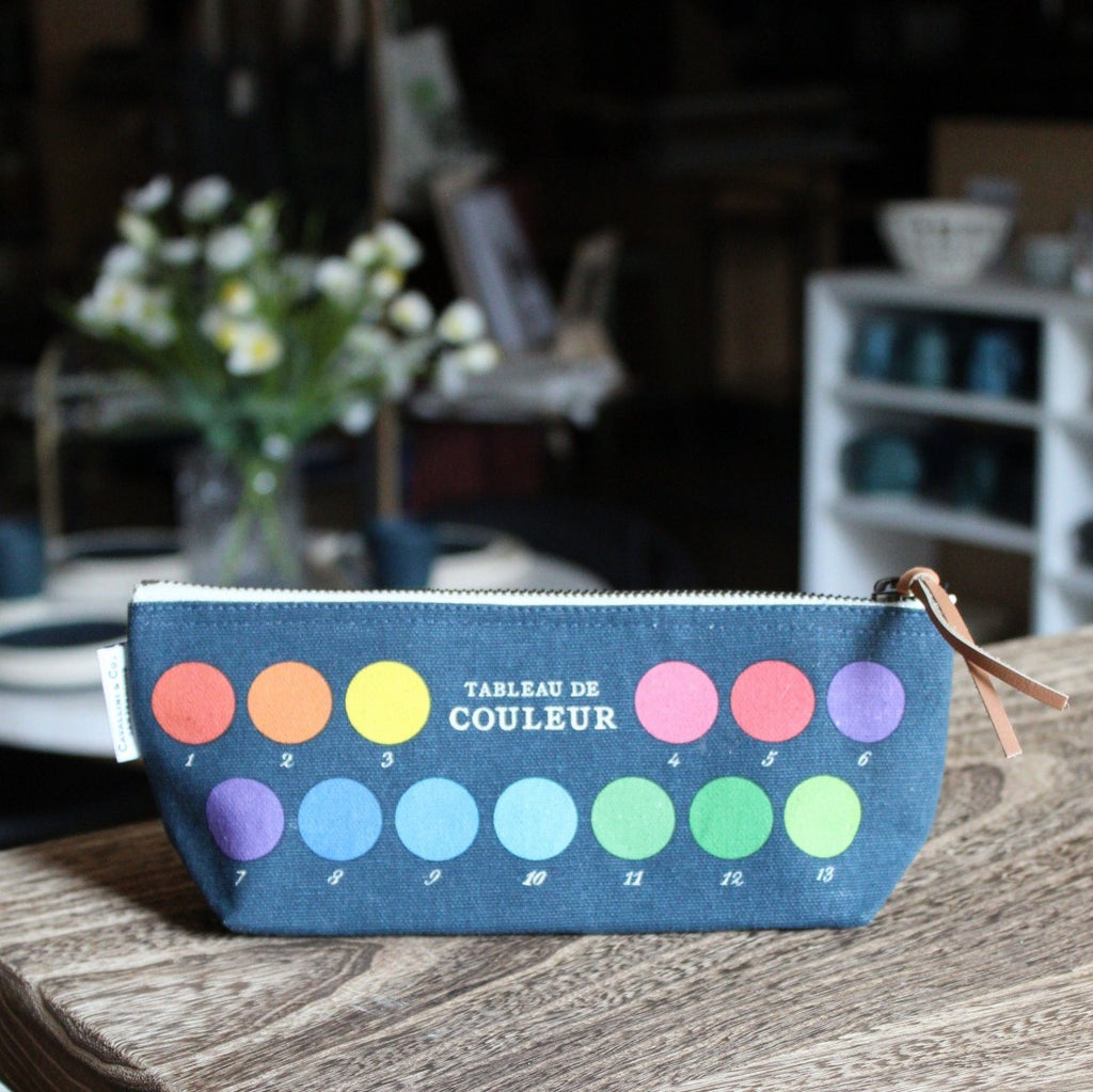 Store all your daily essentials with the Cavallini Colors mini cotton pouch. Made from 100% cotton, the “Tableau de Couleur” design features a deep blue background with circles of color that run from orange to green, and the pattern repeats on both sides. A zippered closure with a leather pull ensures contents stay secure. These stylish pouches are perfect for your small art supplies, makeup, and on the go essentials.