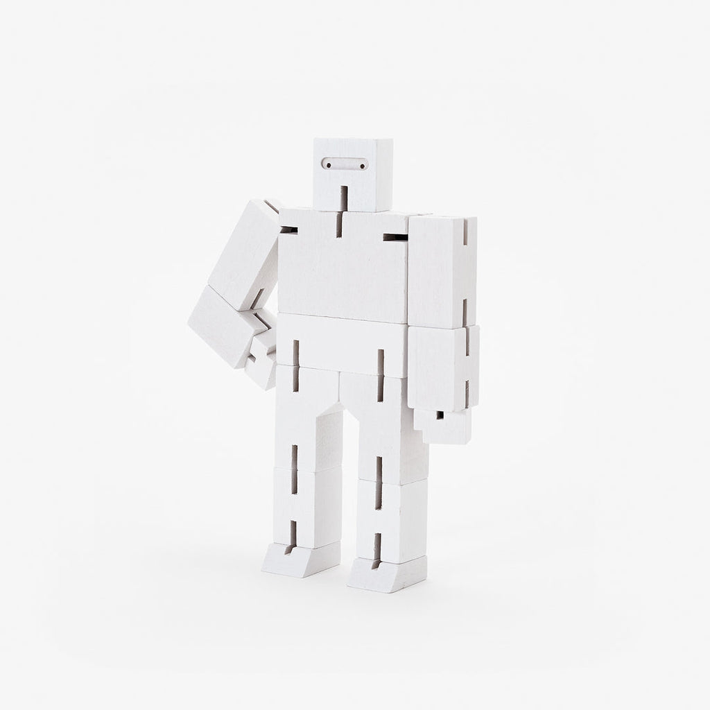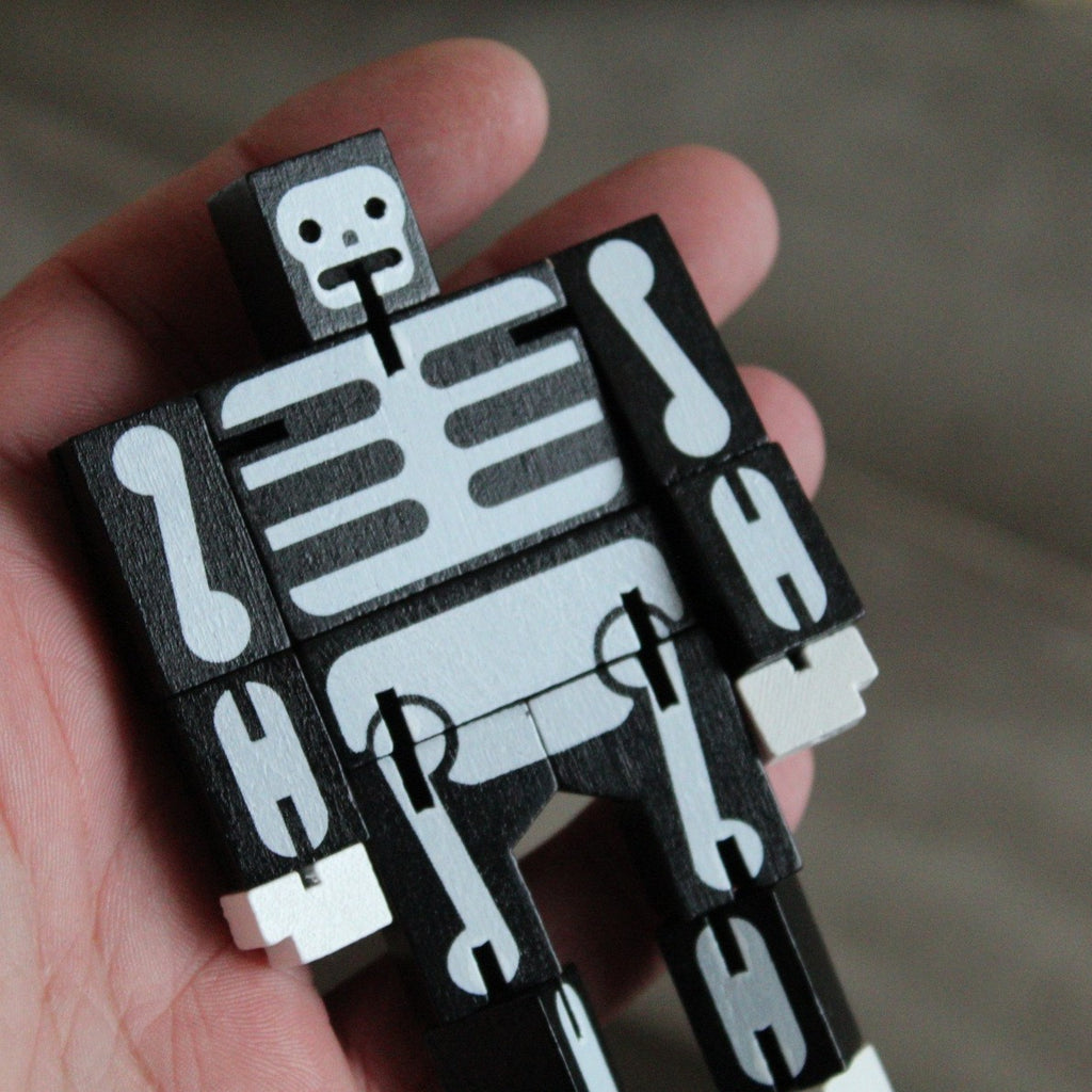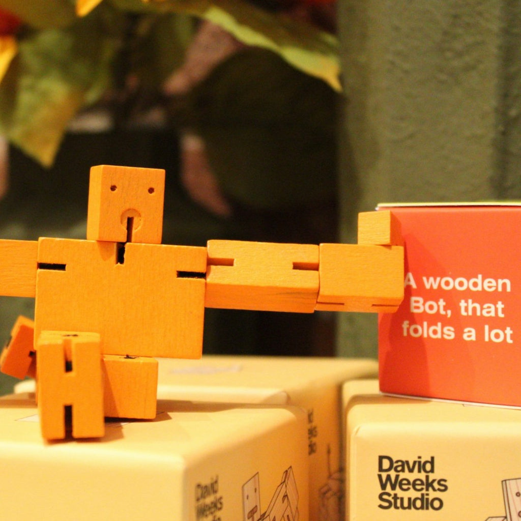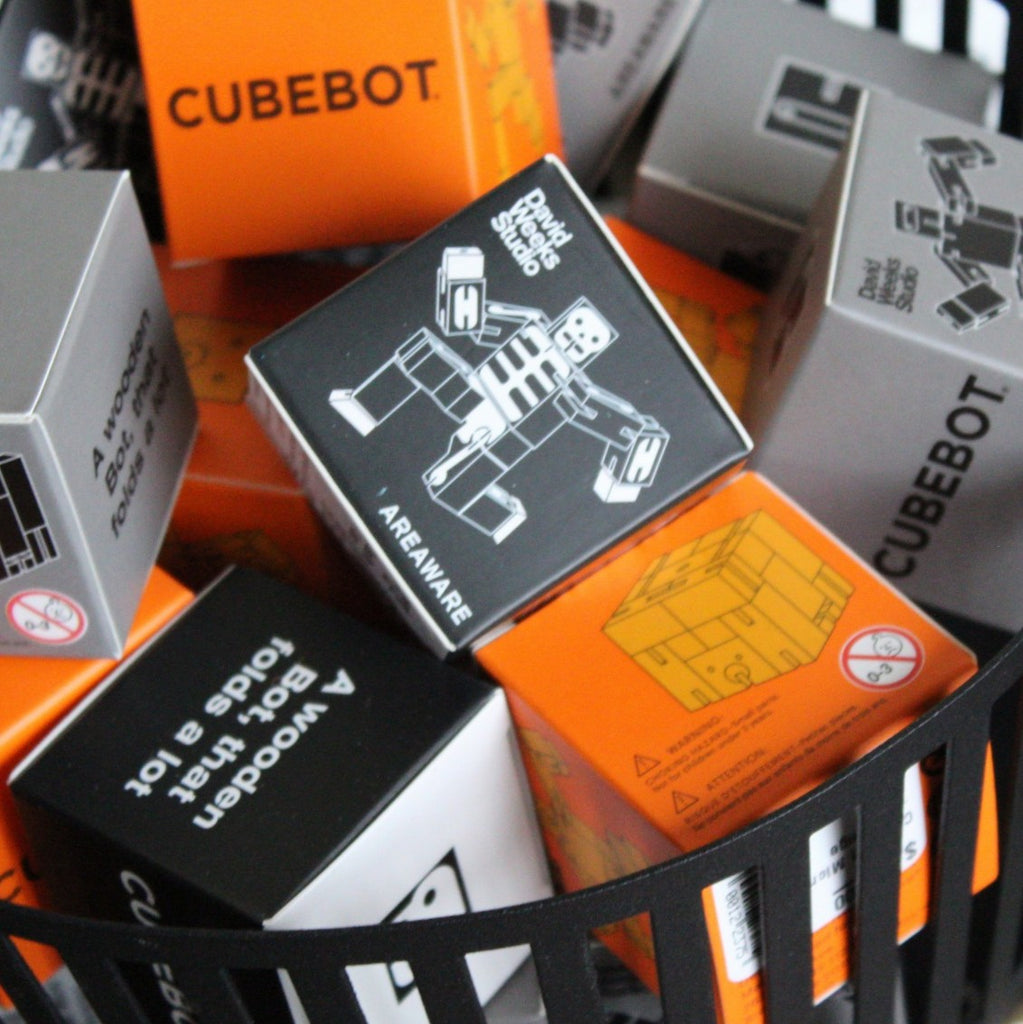 Cubebot® is a wooden toy robot inspired by Japanese Shinto Kumi-ki puzzles. Made from wood and elastic, Cubebot can be positioned to hold dozens of poses. When it's time to rest, Cubebot folds back into a perfect cube. A classic toy for all ages that will endure generations of play. Recommended for ages 3 years old and up.