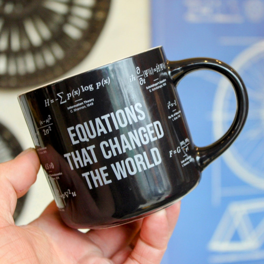 Experience the power of equations that changed the world with this bold black and white ceramic mug. With these iconic equations, each sip of your favorite beverage will inspire you to think big and dream even bigger. Perfect for anyone who loves science, math, or history, this mug is a daily reminder that the impossible is possible. Get yours today and start each day with a new sense of possibility.