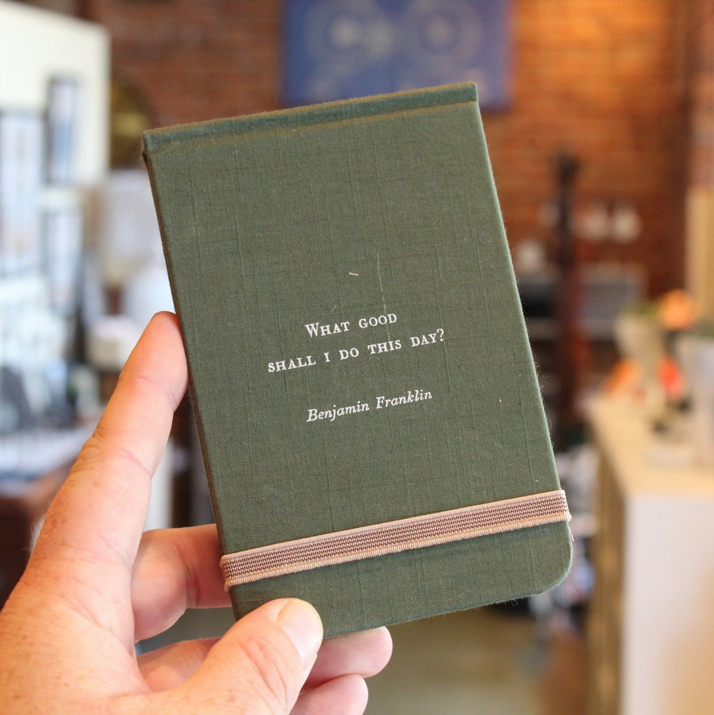 These cloth journals come with blank sheets and a rip-and-tear edge on top, plus a stretchy strap at the base to keep it all together!