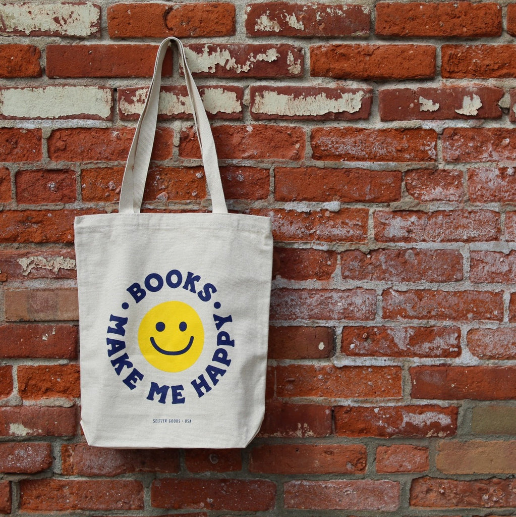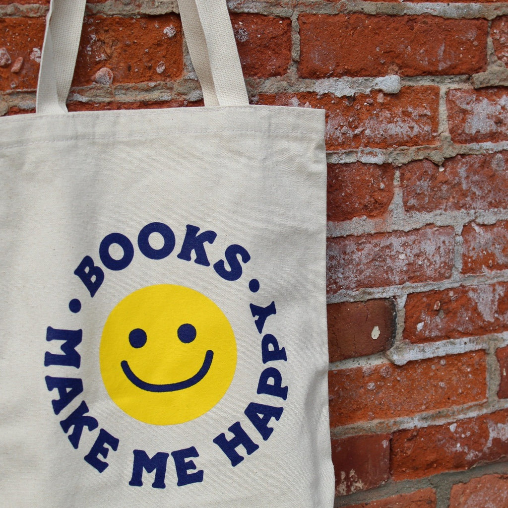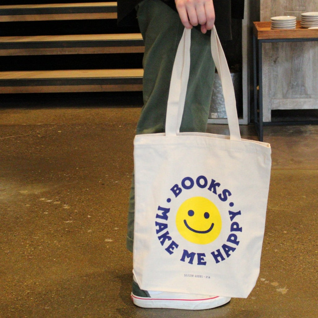 Wear a big smile everywhere you go with The Happy Books Smiley Tote. Made from 100% natural cotton canvas, what better way to show your favorite book some appreciation!