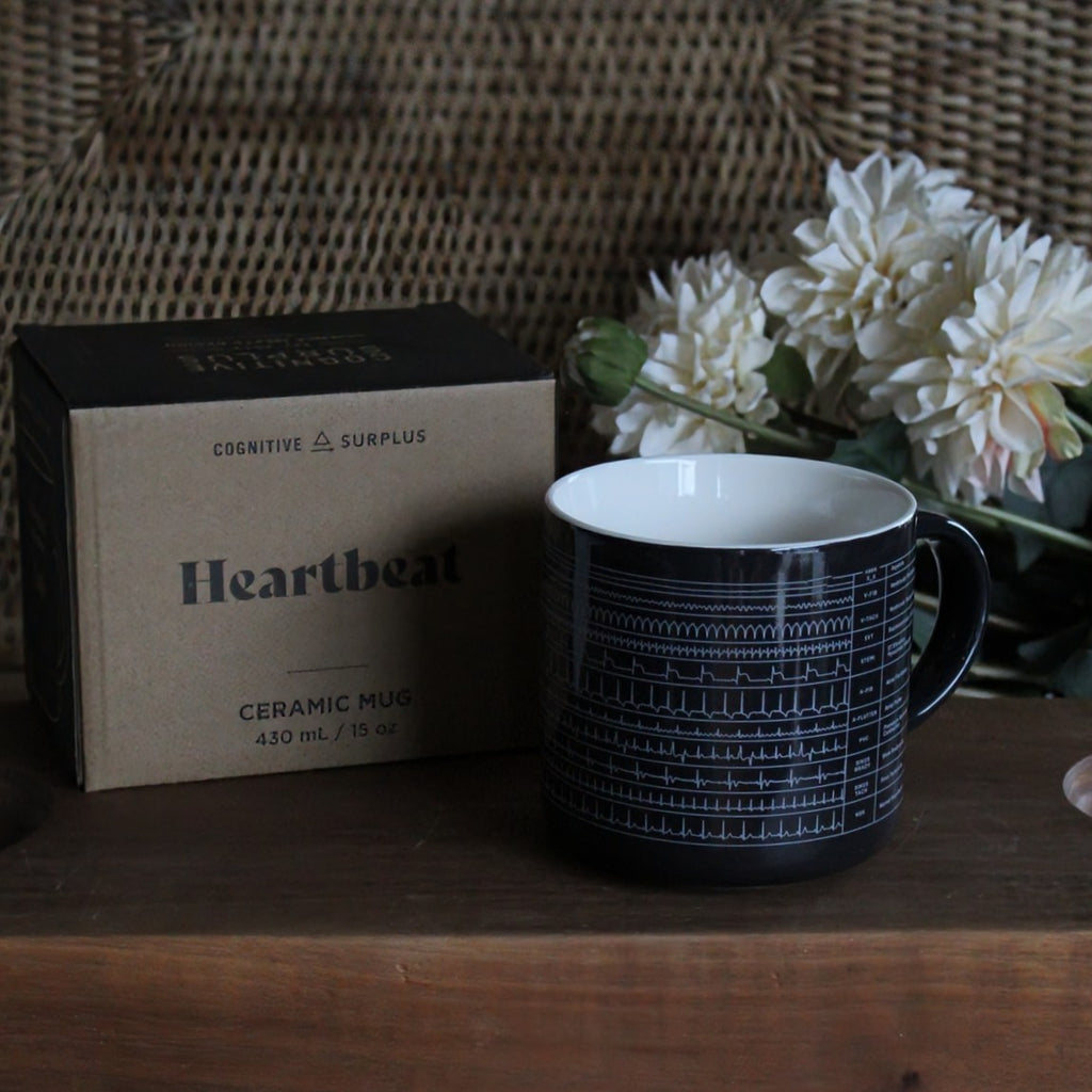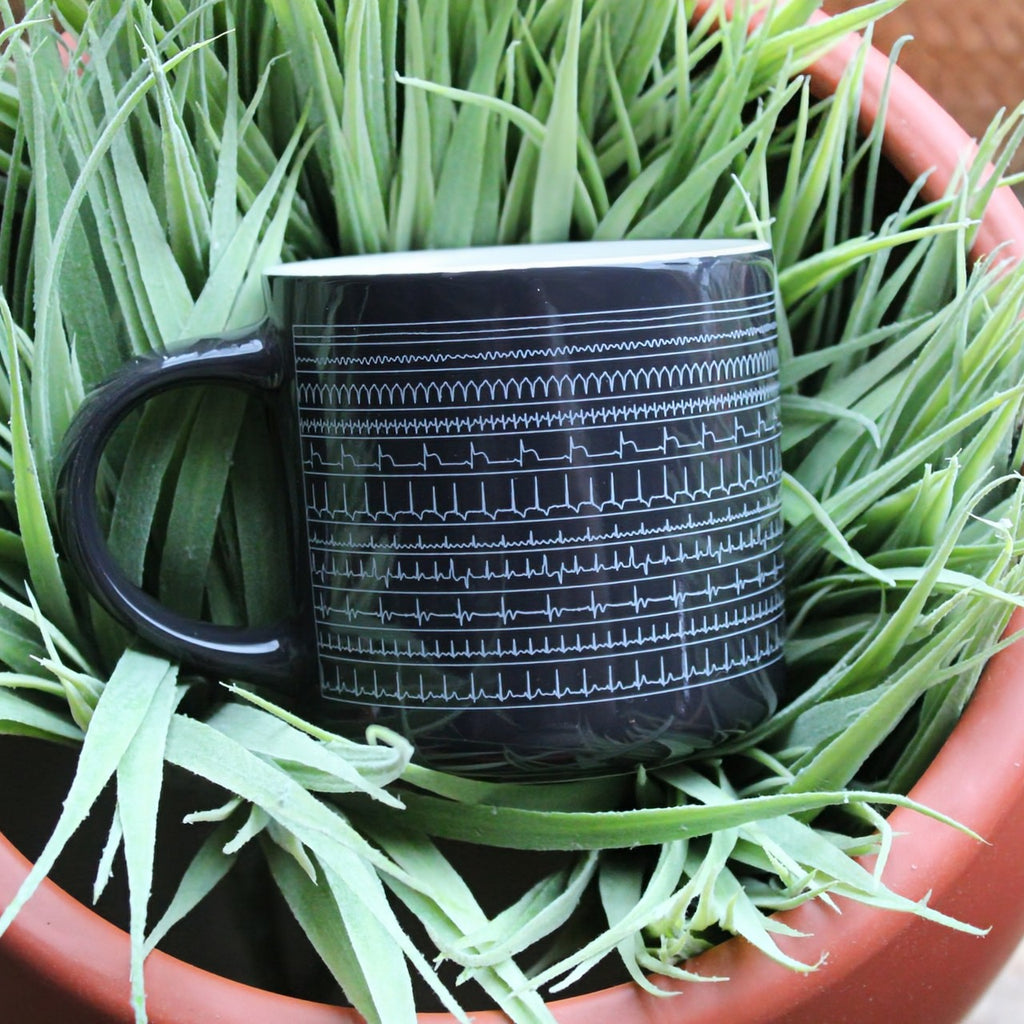 Get into the rhythm of your day with your favorite hot beverage and this Heartbeat mug. Perfect for your favorite EMT or cardiologist – or use it to study your cardiac rhythms while you sip!