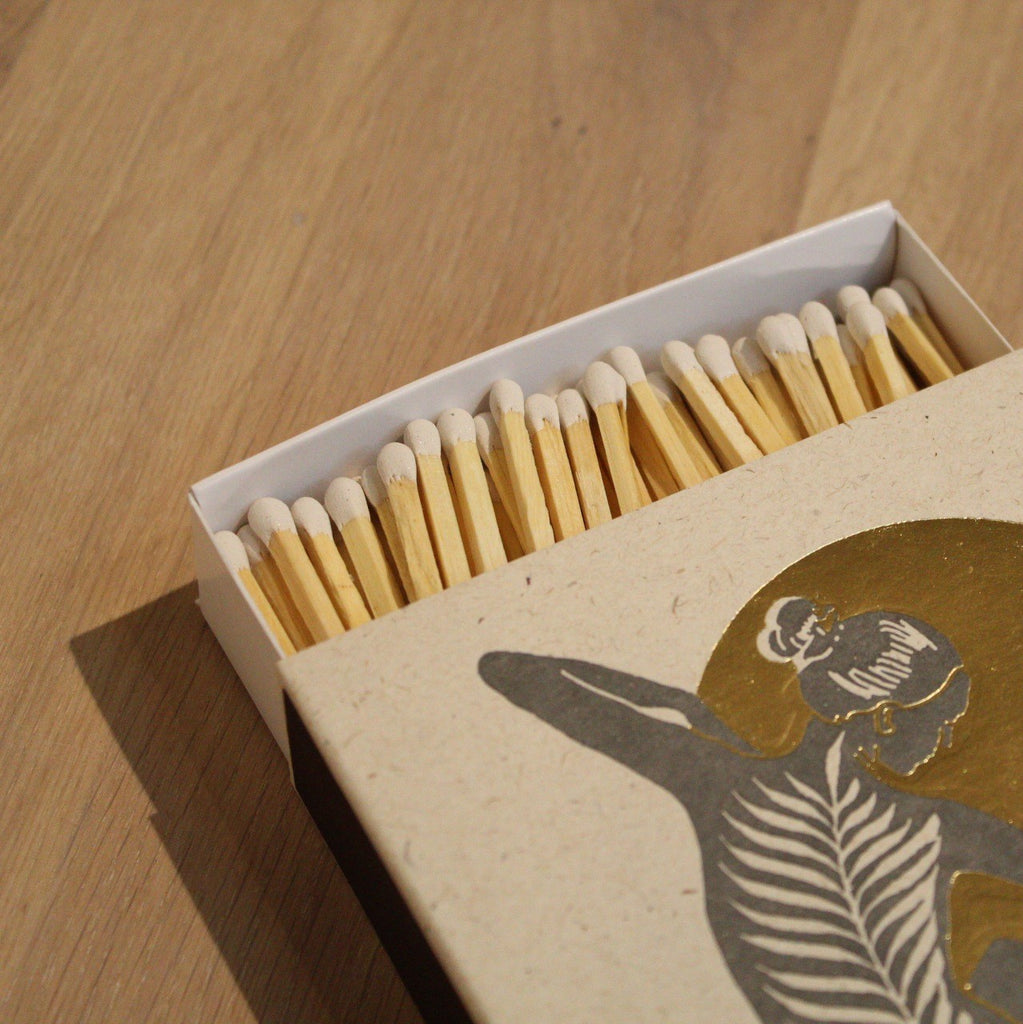 These luxury matchboxes are classic. Printed and hand assembled in the UK using traditional letter press to give a tactile finish. Designs taking inspiration from vintage matchbox covers. Sourced from strictly controlled FSC certified woodlands, all packaging is compostable & eco friendly