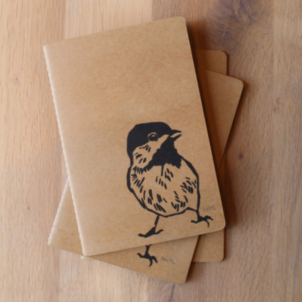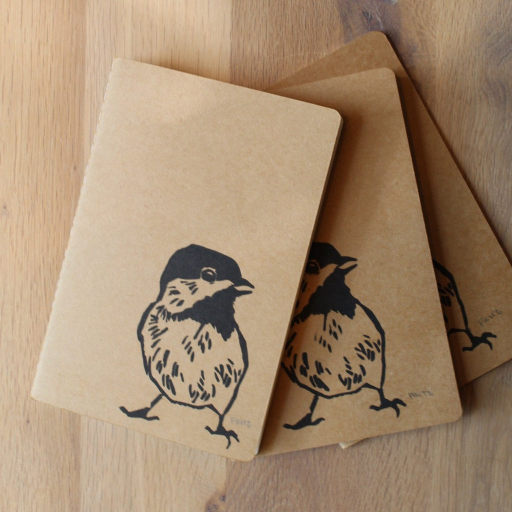Lino Print Chickadee Notebook