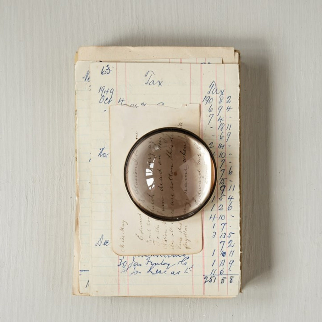 Keep things in place, and keep track of fine print with this heavy paperweight and magnifying glass in one.