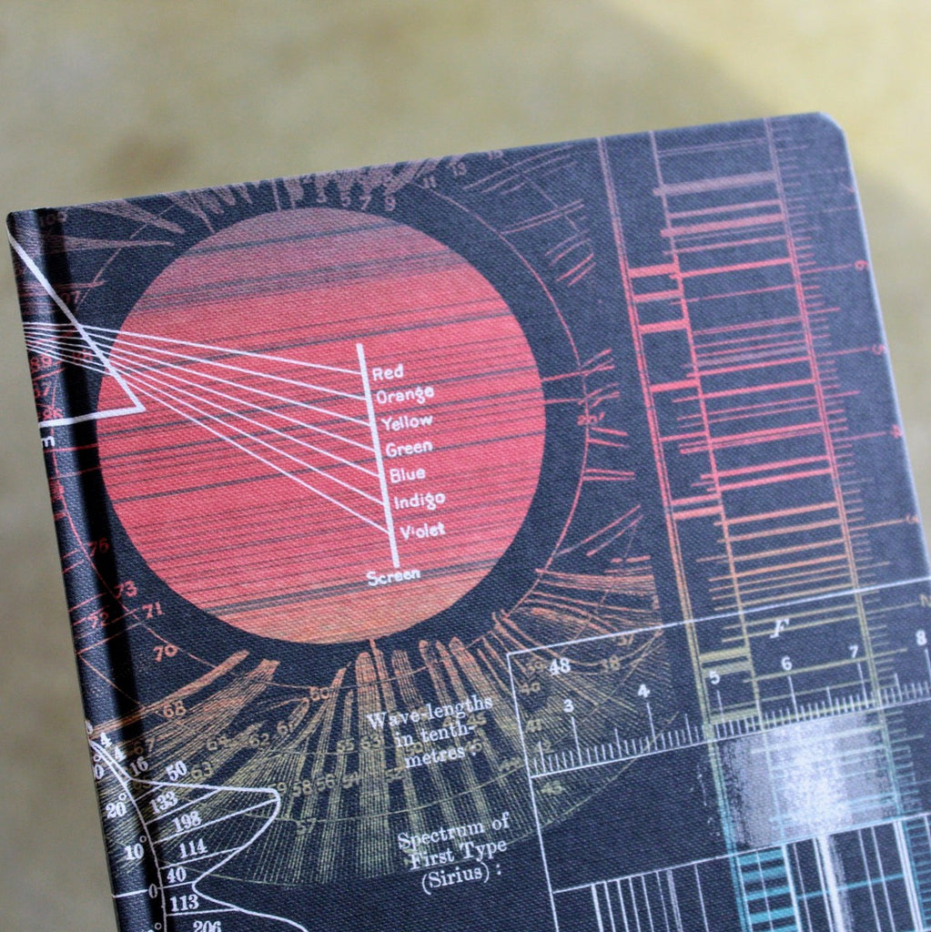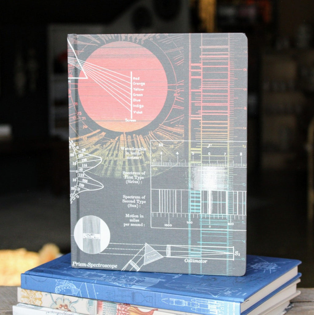 This notebook celebrates the sun and its electromagnetic emissions that power all life on earth. Use it to catalog your adventures on one trip around our star, take notes in physics lecture, or record data in the lab.