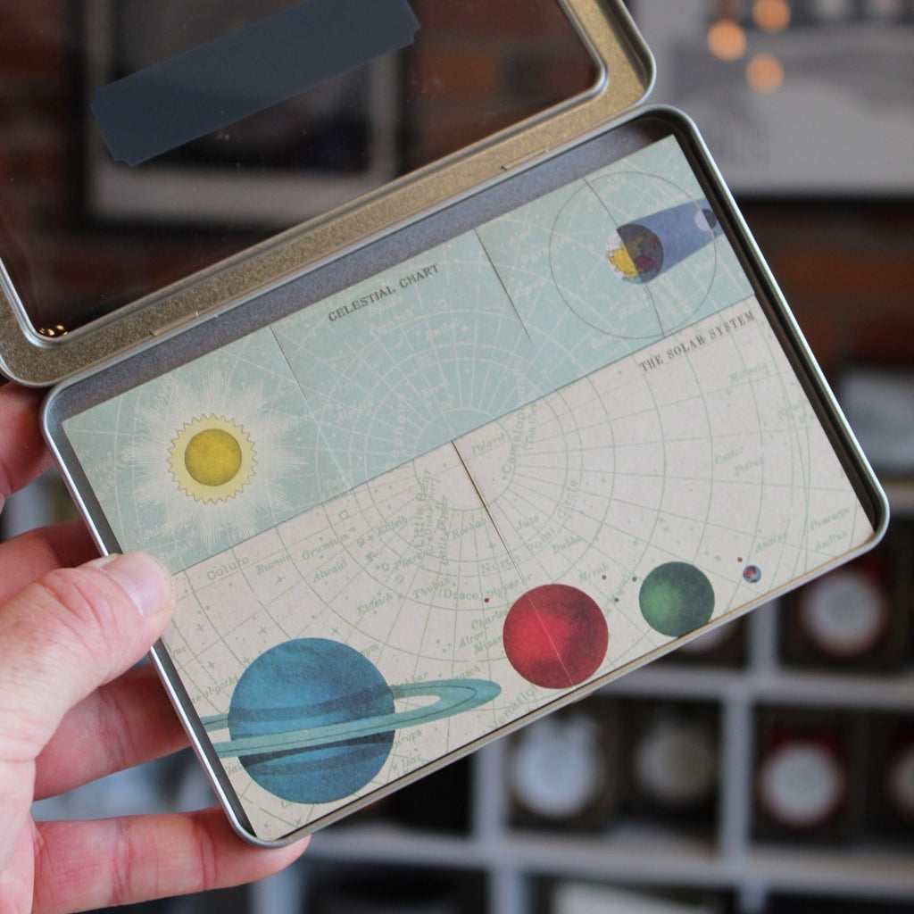 Reminders, page markers, and to-do's have never looked so good. Celestial sticky notes are packaged in a tin with 5 sticky note pads.