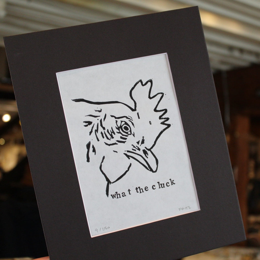 A one-color block hand printed in Michigan on 8 x 10 black lightweight high-quality printmaking paper, hand-printed with Cranfield Caligo Safewash inks.