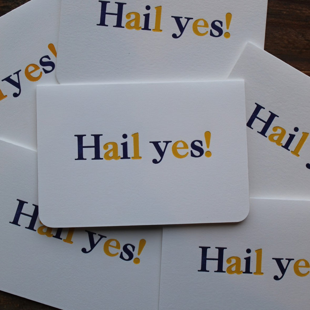 Each card is designed with care and printed with haste! Made on an antique letter press in Chelsea, MI!