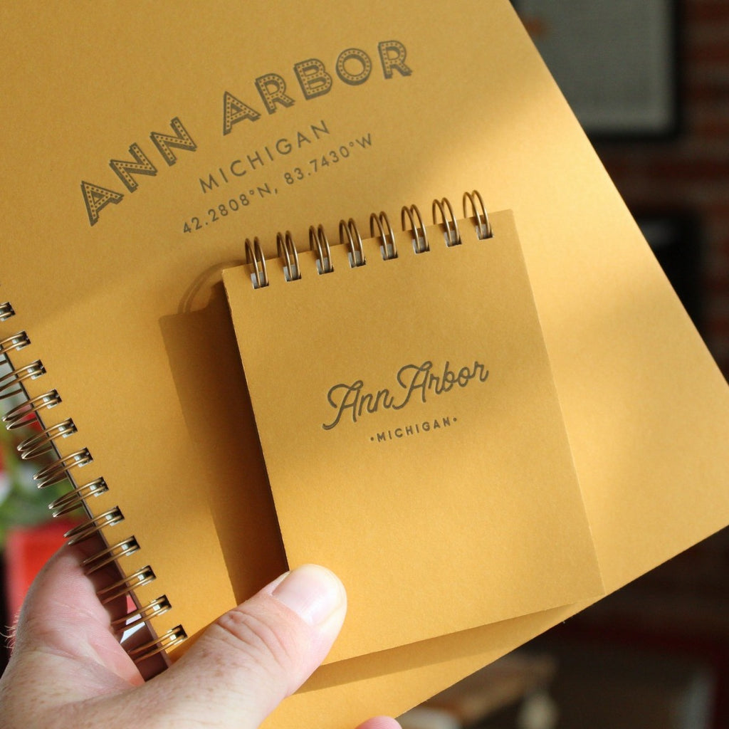 These custom made Ann Arbor Mini Jotters have smooth, off-white paper and are perfectly sized for quick notes.