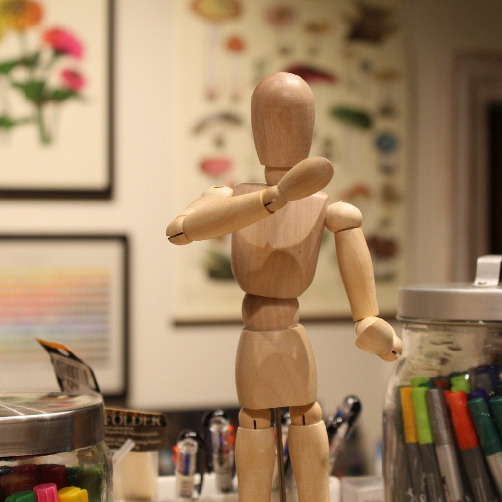 Discover the fundamentals of sketching with this precisely proportioned, 12" artist mannequin. Expertly crafted from natural wood. Easily adjustable to any pose, providing aspiring artists with an authentic reference for drawing projects.