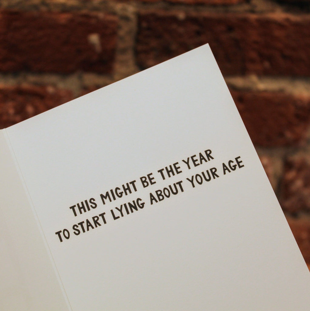 Inside of card says: This Might Be The Year To Start Lying About Your Age