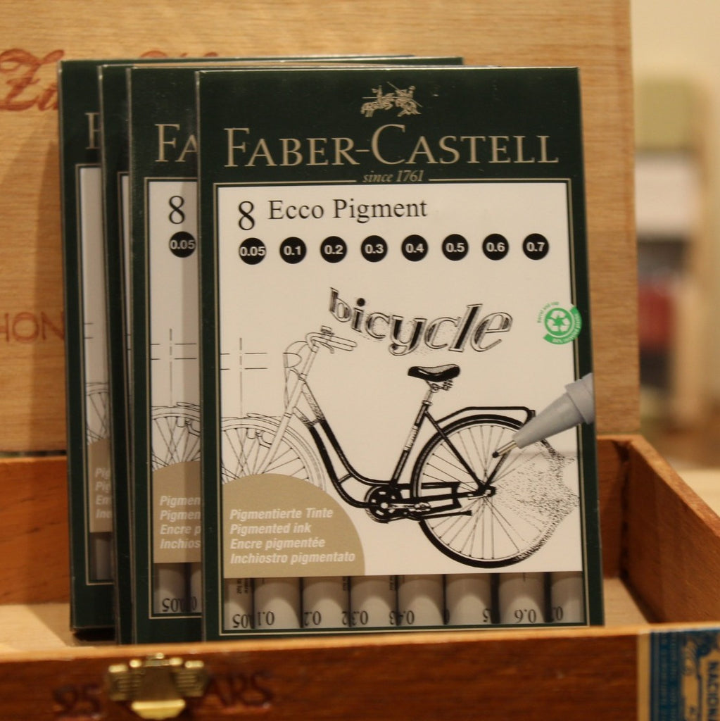 Faber-Castell’s reliable Ecco Pigment Fineliners are ideal for writing, drawing, and sketching. With its special pigmented ink they function especially well on drawing and transparent paper, and are even erasable on tracing paper! They well suited for rulers and stencils. Ecco Pigment Fineliners are waterproof and light fast with an ergonomic grip zone and convenient metal clip.