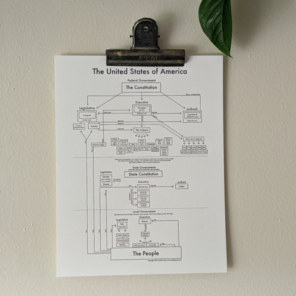 A very simple diagram of a very complicated government. Don't be apathetic to voting and government because the ecosystem of politics is too complicated. ANYONE can go straight to the top. This corporate ladder is no different than any other. Just takes confidence.