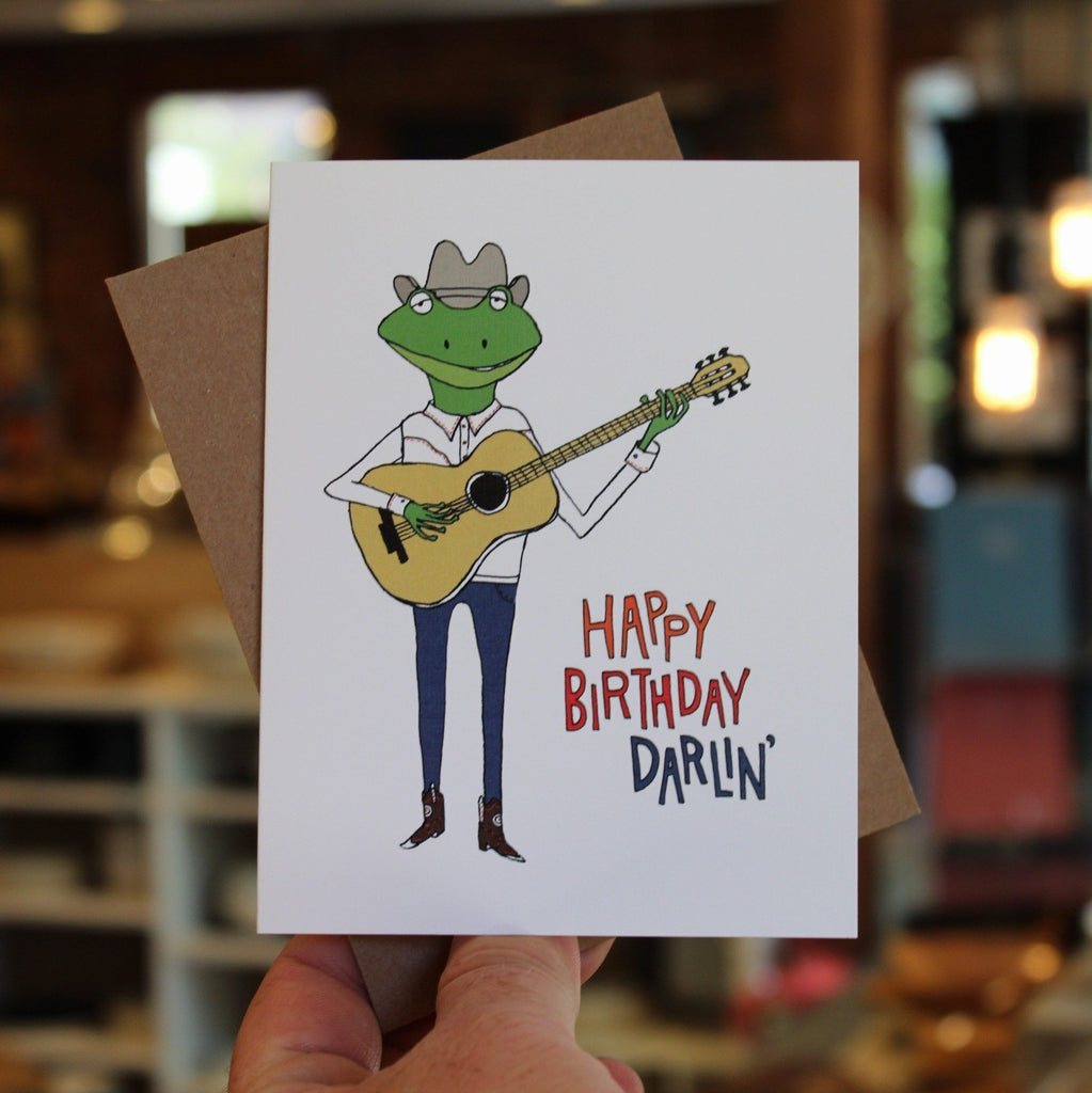 This swaggering frog cowboy with guitar in hand wishes you a "Happy Birthday, Darlin!"