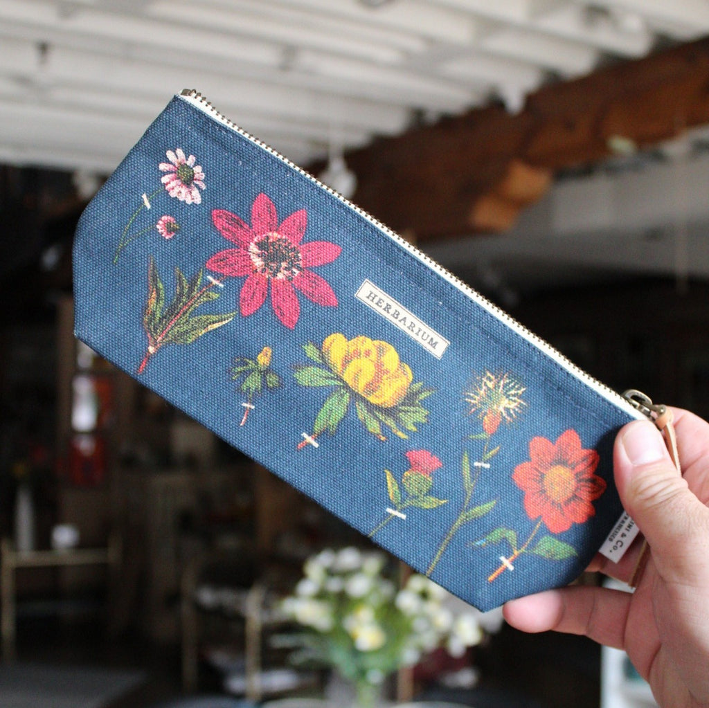 The Herbarium Mini Cotton Pouch makes the perfect coin purse, pencil case, or makeup bag. This chic pouch features vintage illustrations and is made from 100% natural cotton. It also has a dark navy cotton lining, a high-quality YKK zipper, and a leather zipper pull.