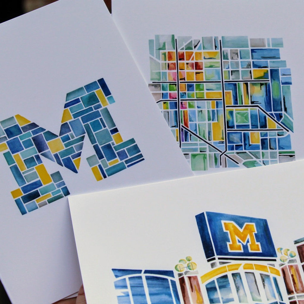 Classic watercolor cards of our beloved mitten state, and some of our favorite places in Ann Arbor. Done in rich watercolor. Made right here in Michigan!