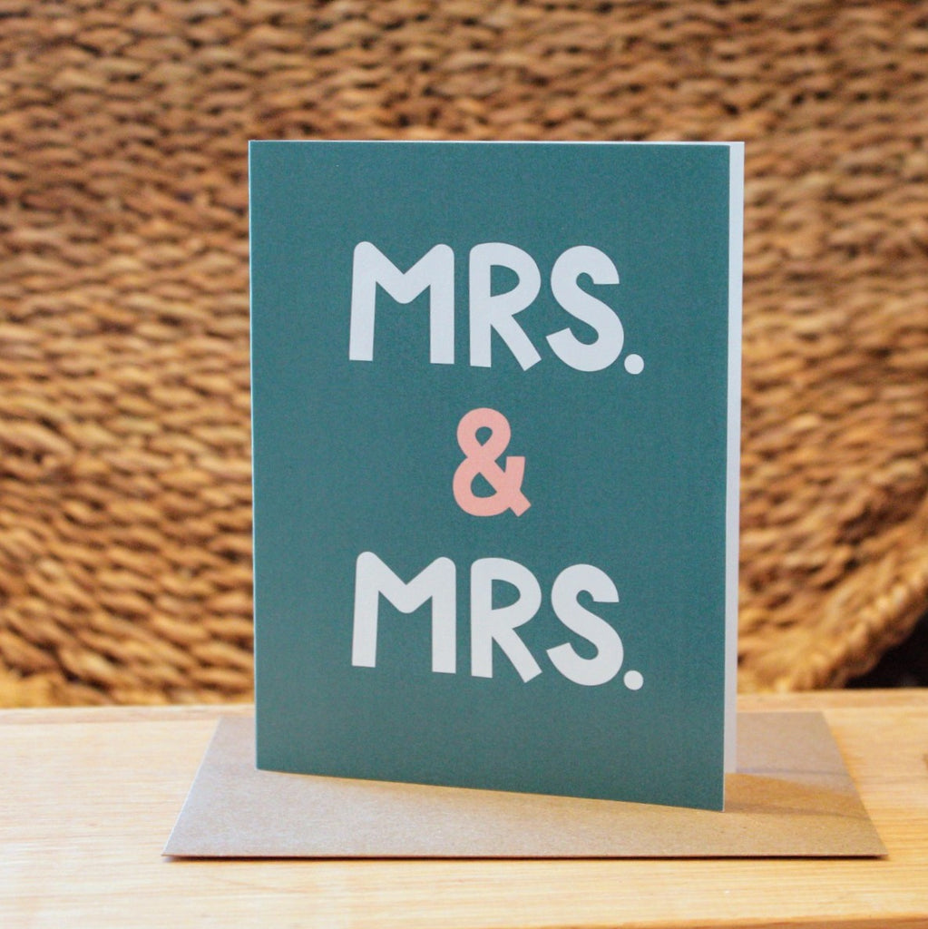 Celebrate the wedding or engagement of your two favorite ladies with this bold greeting card. Let your fav gals know you can't wait to see them tie the knot.