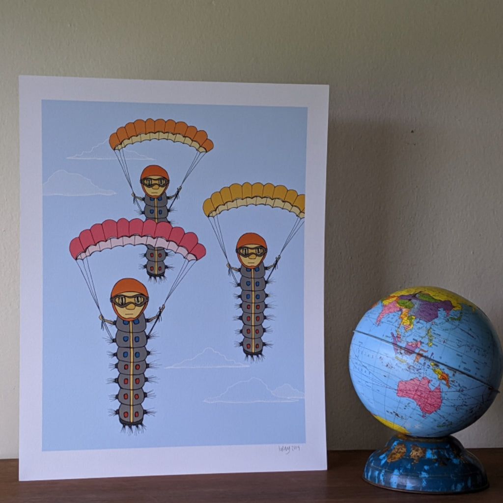 Parachuting Caterpillars Print