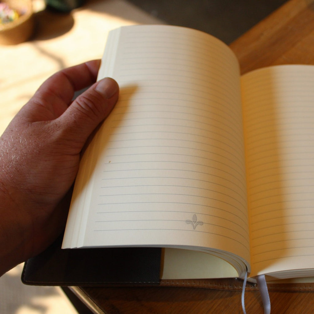Paper refill for 6"x 8" Refillable Snap Journals. Pen friendly ivory-colored, acid-free paper, lined pages.