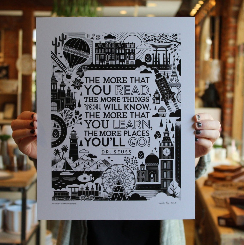Celebrate the joy of reading with a wonderful quote by Dr. Seuss, perfect for the book lover on your list.