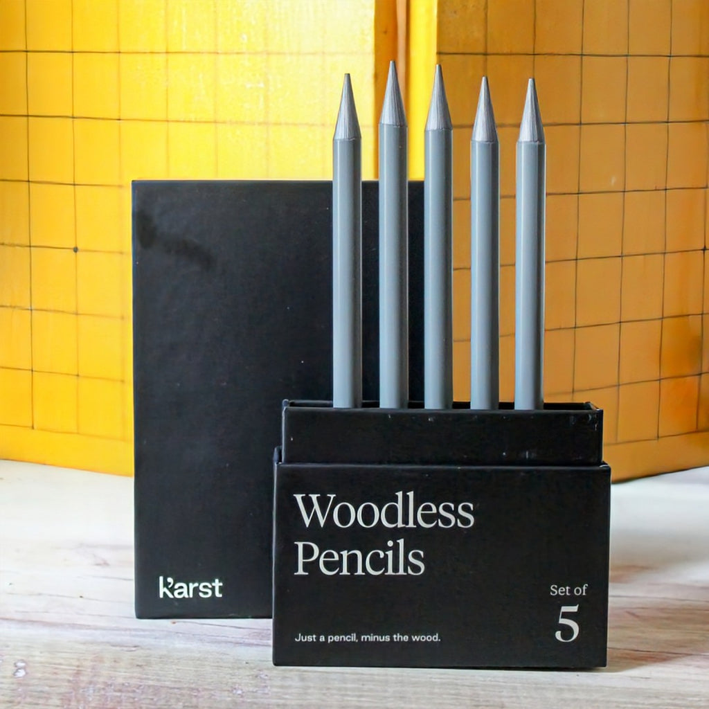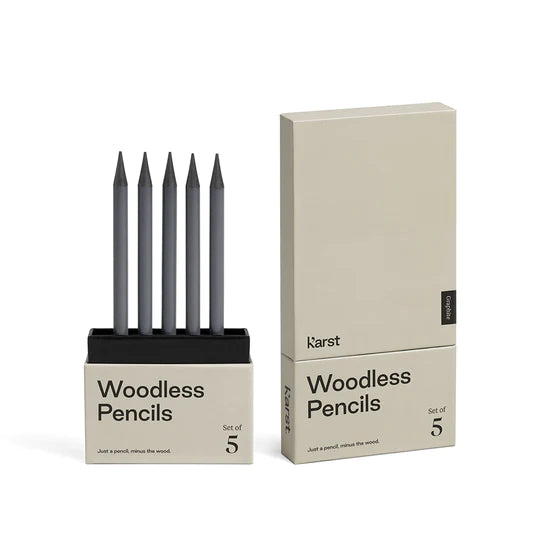 Write more, sketch more. These Woodless Pencils come as a set of 5 solid graphite pencils. Made of 100% pure graphite with 2B hardness, it’s the best lead grade for paper products. Matte coating to keep your fingers clean.
