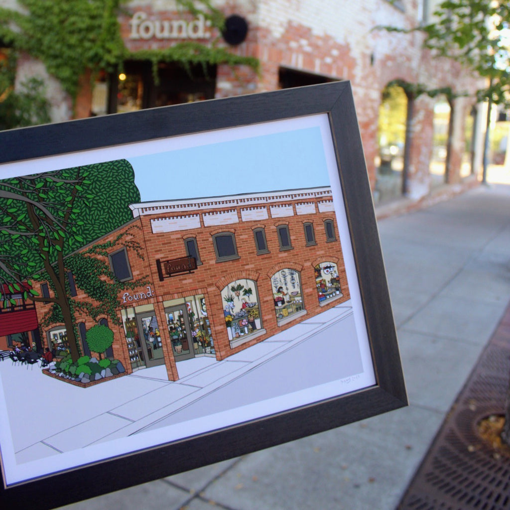 Found turned 20 years old in 2025, and to commemorate our milestone anniversary We asked our friend Nicole Ray to illustrate our storefront! Take a peek and see some of our favorite Found finds in the windows, you might even spot Mary or Michael in the shop!