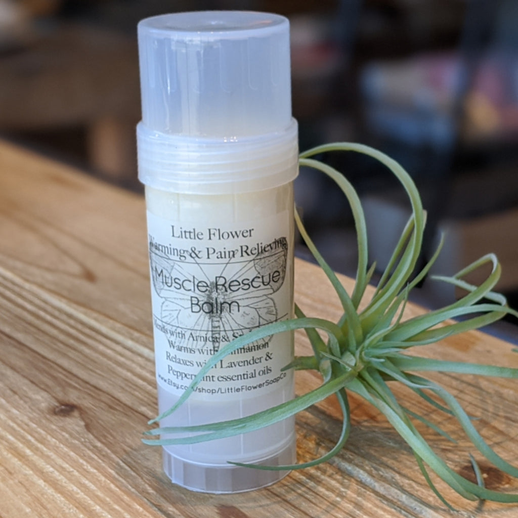 The Muscle Rescue Balm is an all-natural, sore muscle remedy, packed with generous helpings of healing ingredients. This treasured recipe was meticulously crafted by The Little Flower Soap Co. in Chelsea, Michigan.