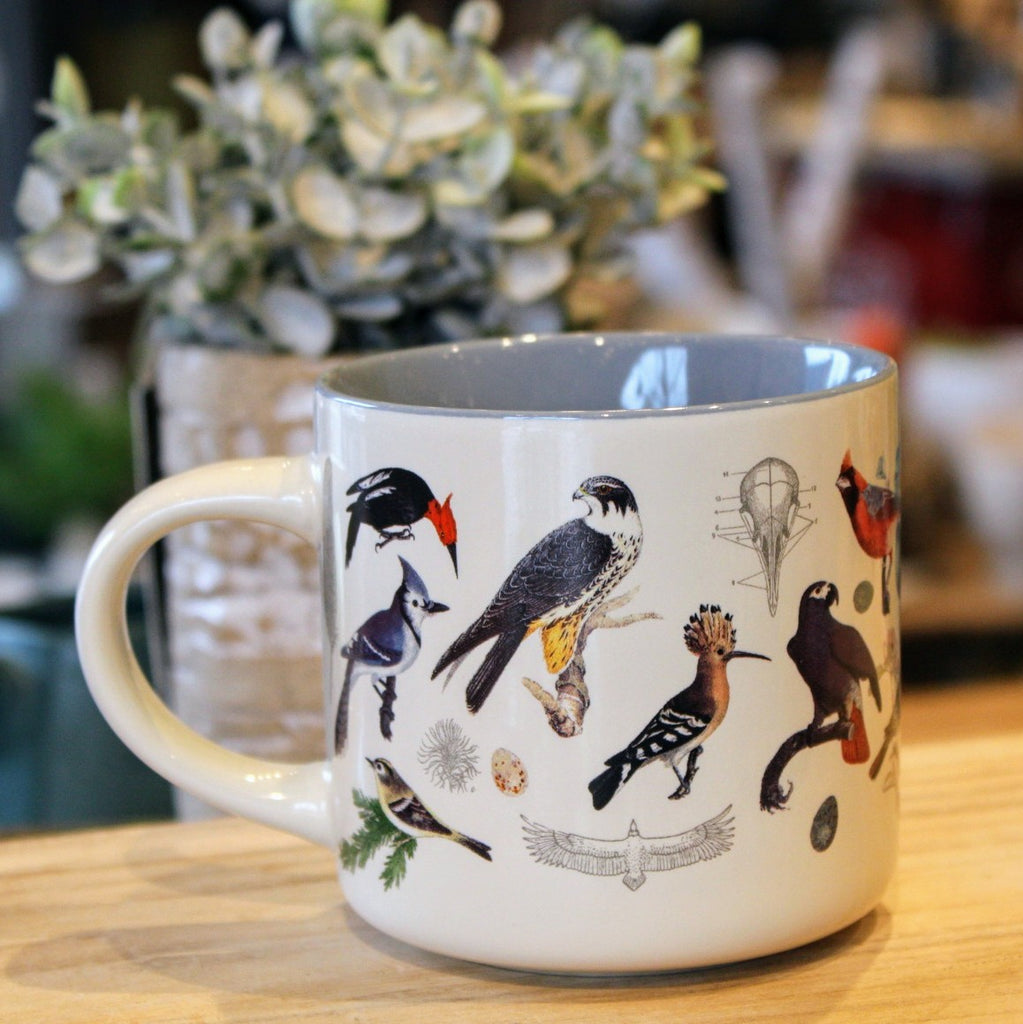 Calling all bird-nerds! This Birdwatching mug is a hoot and a half! Featuring full-color illustrations of a variety of our favorite feathered friends and a coordinated blue sage pop-color inside, this mug is perfect for slowly sipping your favorite hot beverage while making notes of the birds you see at the feeder.