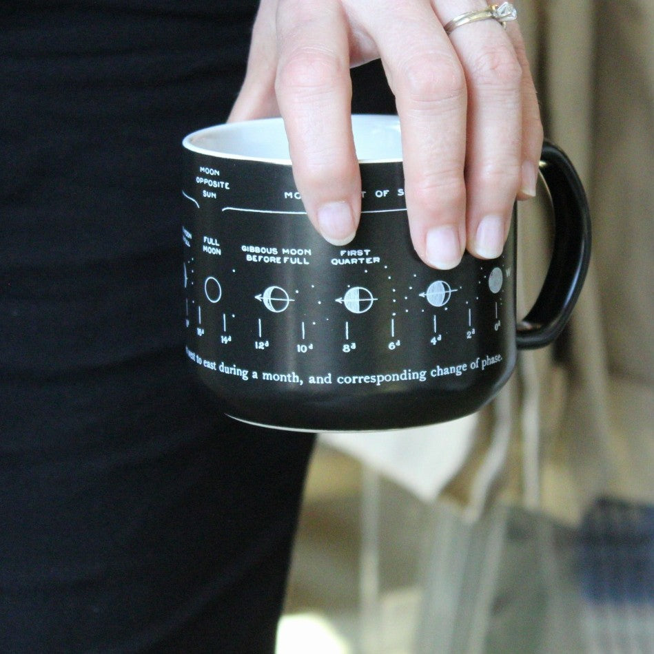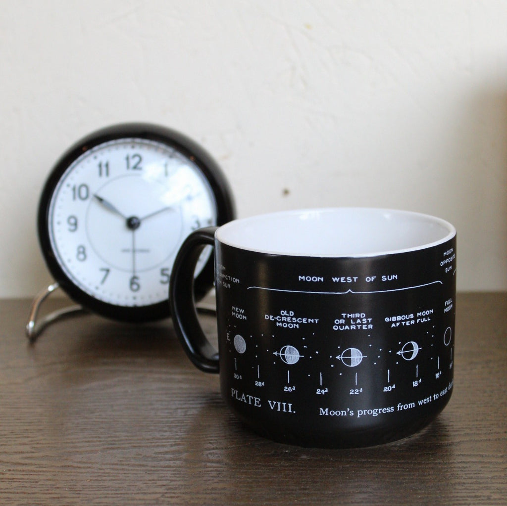Fuel your passion for the wonders of the universe with this elegant black and white mug featuring the phases of the moon. Perfect for anyone who appreciates the magic of the night sky or getting lost in the waxing and waning of our favorite local satellite.