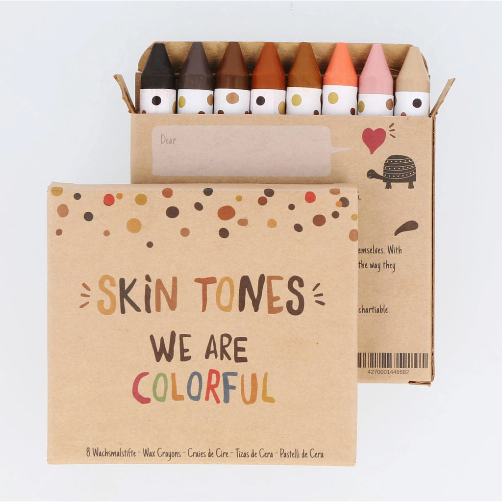 Diversity even for the youngest! With the 8 extra-thick skin-colored wax crayons, children from 3 years of age can draw their friends as they really look, recommended by educators. Extra thick wax crayons. Suitable for children from 3 years. Packaging is made from recycled cardboard. High coverage.
